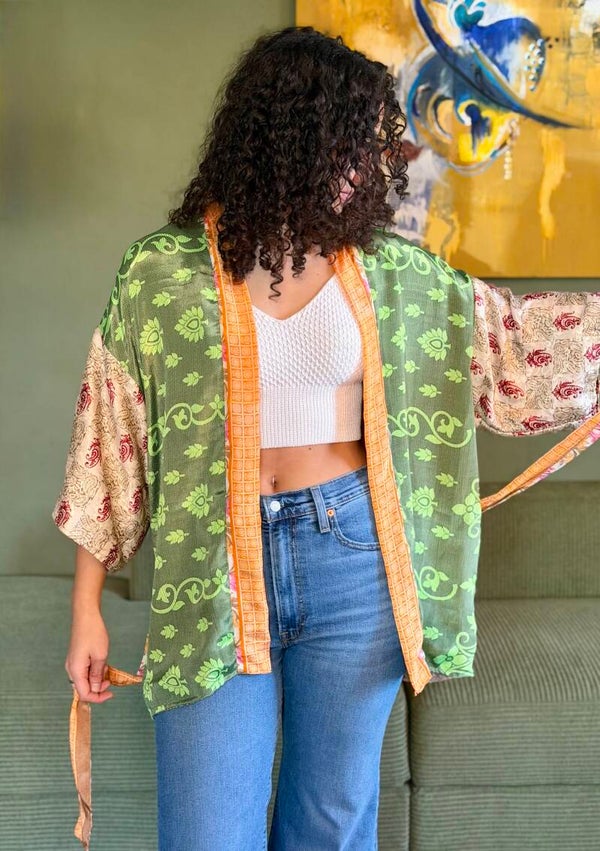 Kimono in seta di Sari, tessuto molto morbido, reversibile