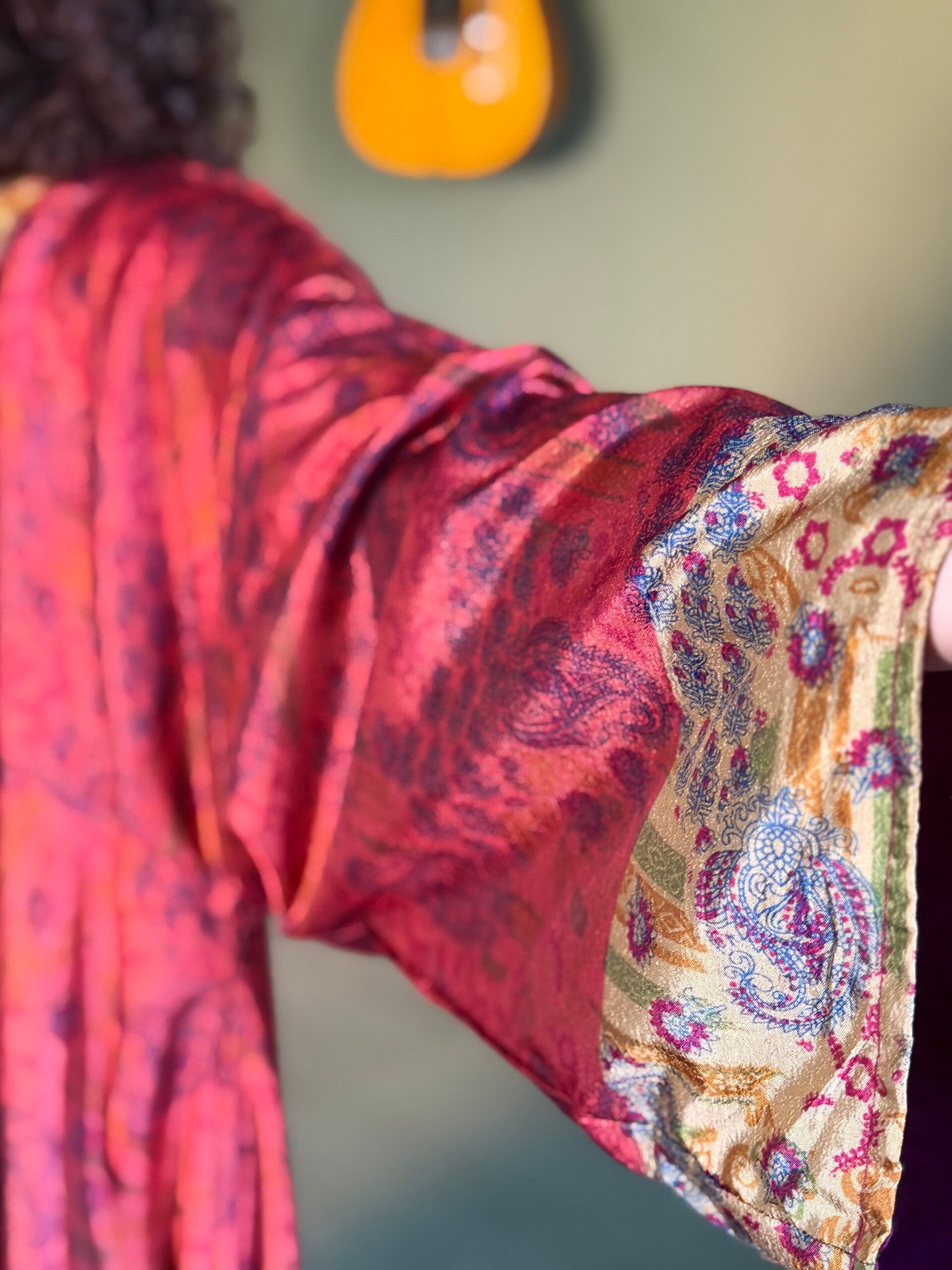 Kimono in seta di Sari, doppio tessuto, ampio e con punte nella lunghezza